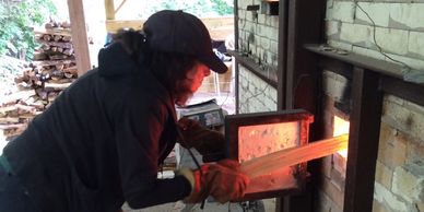 The kiln is then “bricked up” and sealed before lighting the kiln. During the fire, as the wood combusts it produces "flyash" and some volatile salts and minerals, which ultimately fuse with the silica on the surface of the ceramic pieces in the kiln, forming a glaze.