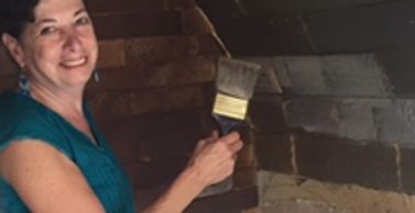 Before the next fire can be loaded, the inside of the kiln and all the shelves and kiln furniture must be "cleaned"--scraped and kiln-washed.