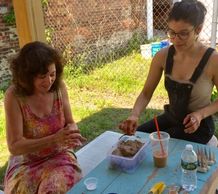I buy most of my clay and materials at Northeast Ceramic Supply in Troy, NY. However, I live in the Hudson Valley and clay can readily be found in the earth here. A few years ago a group of potters heard about a deposit of Albany Slip Clay, and we went to search for it in a patch of ground in North Albany. We never found the deposit but we had fun, met some interesting folks, and got very muddy!